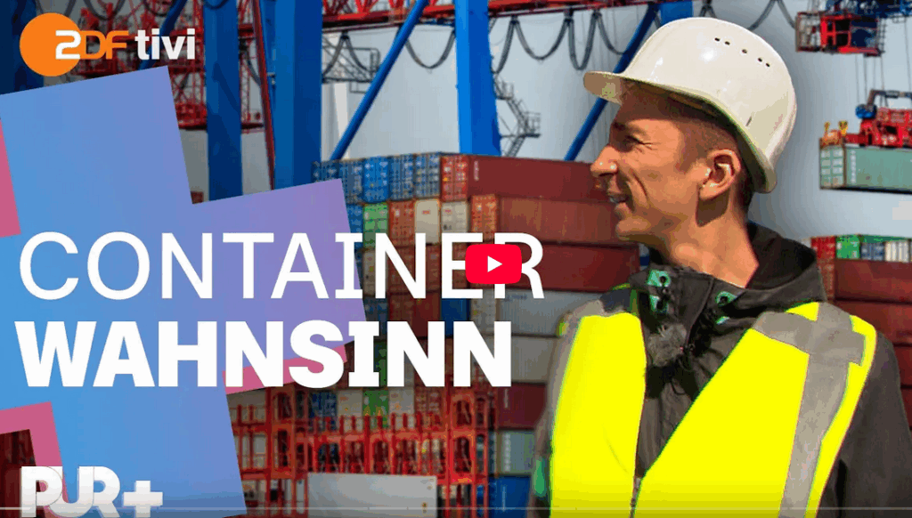 [8:40 Minuten] Der Hamburger Hafen – einer der größten Seehäfen in Europa und Deutschlands größter Containerhafen. Hier werden jedes Jahr Millionen Container umgeschlagen. Das heißt, sie kommen mit großen Frachtern aus aller Welt an, werden abgeladen und dann zum Beispiel per LKW oder Bahn weitertransportiert.